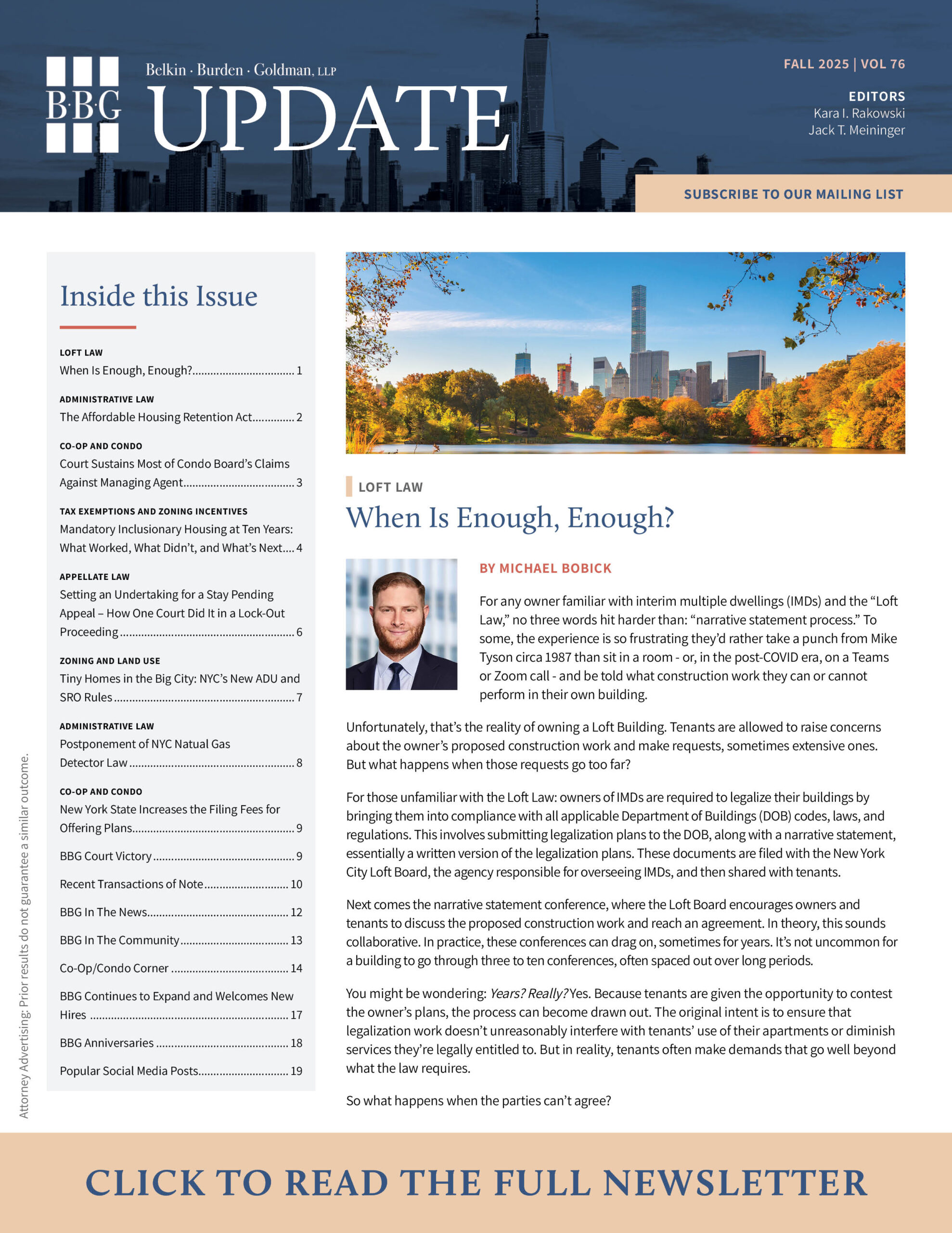 Since 1989, Belkin · Burden · Goldman, LLP, has developed a reputation for finding effective solutions to complex real estate problems.
