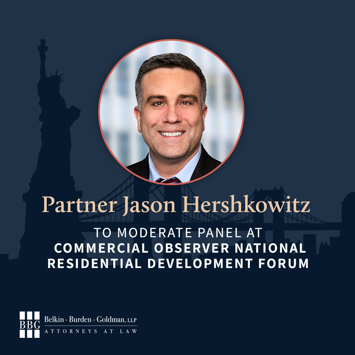 Jason C. Hershkowitz, partner at Belkin Burden Goldman, LLP and Co-chair of the Tax Exemptions and Zoning Incentives practice, will moderate a panel at the Commercial Observer’s National Residential Development Forum in New York City on May 28, 2025.