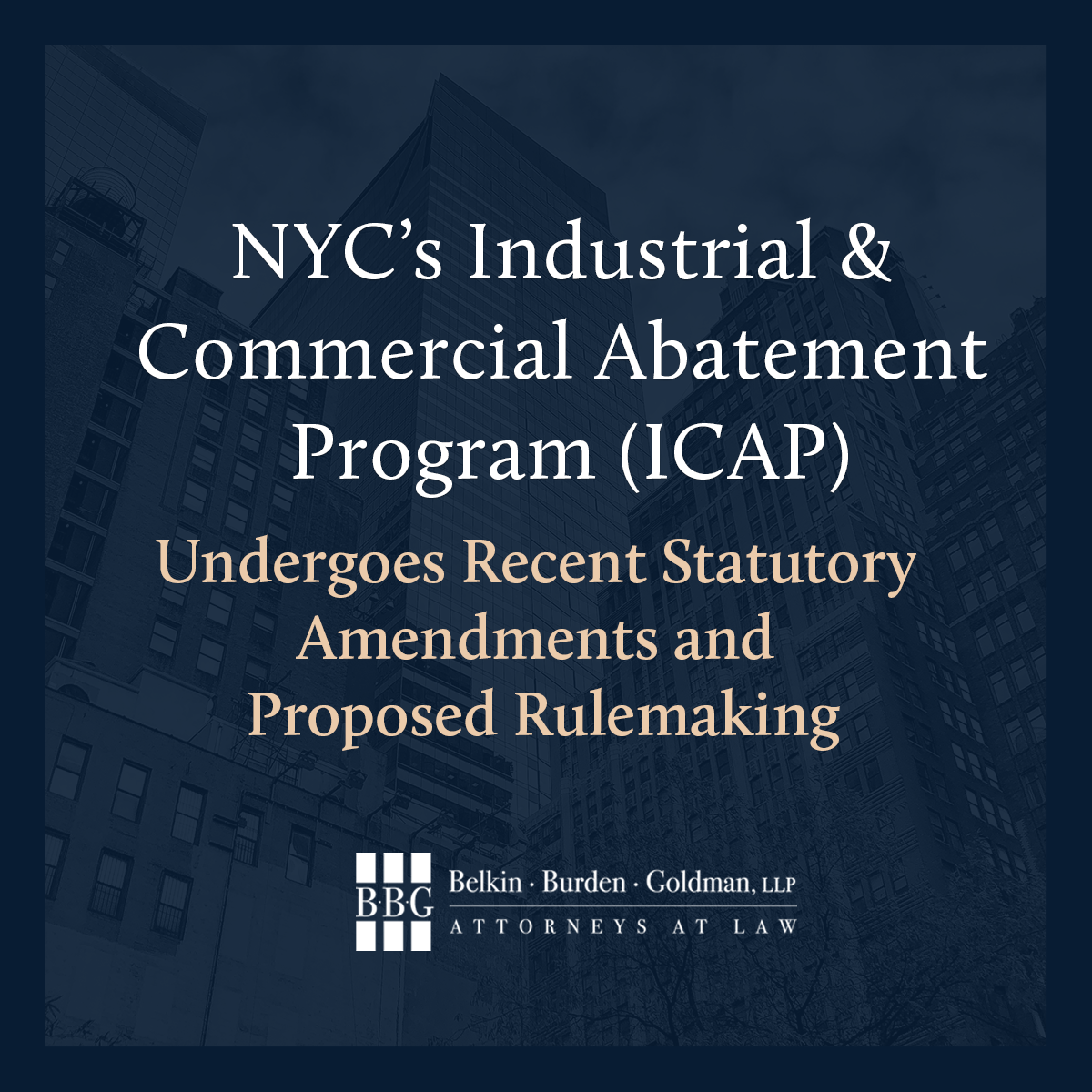 ICAP Statute Amended and Proposed Rules Released by NYC Department of Finance
